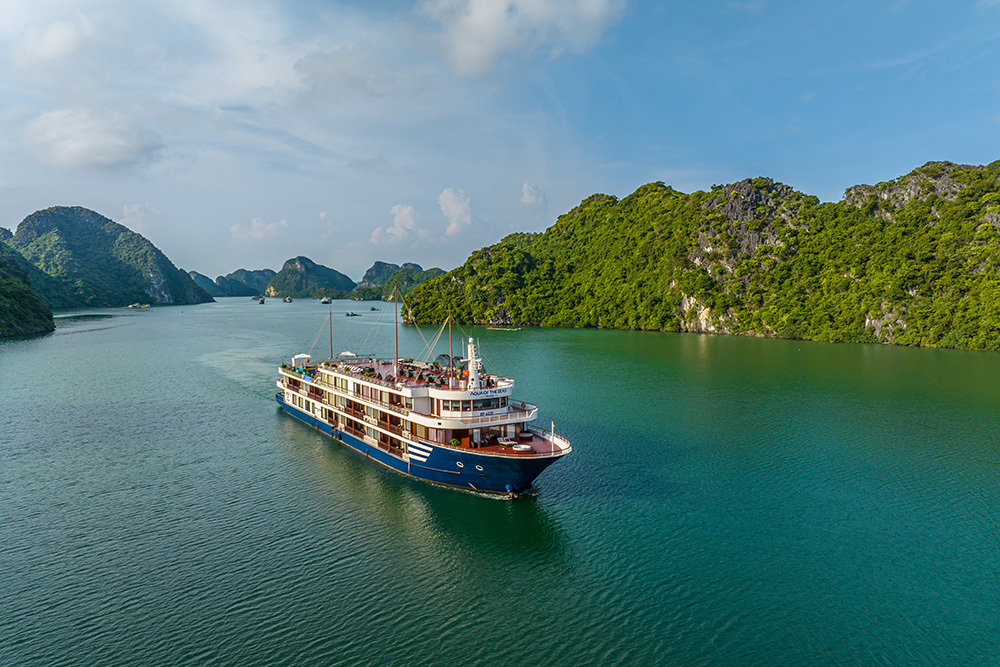 Aqua Of The Seas is a 5 star luxury super yacht offering an ultimate cruising experience through the spectacular landscape of Halong Bay – Lan Ha Bay. 32 cabins all are equipped with a private balcony and ocean-view bathtub. Aqua Of The Seas is also one of the minority of luxurious metal cruises possessing luxury restaurant, an outdoor pool, Gym, Spa… With full facilities, professional service Aqua Of The Seas promises to bring guests the most memorable experience